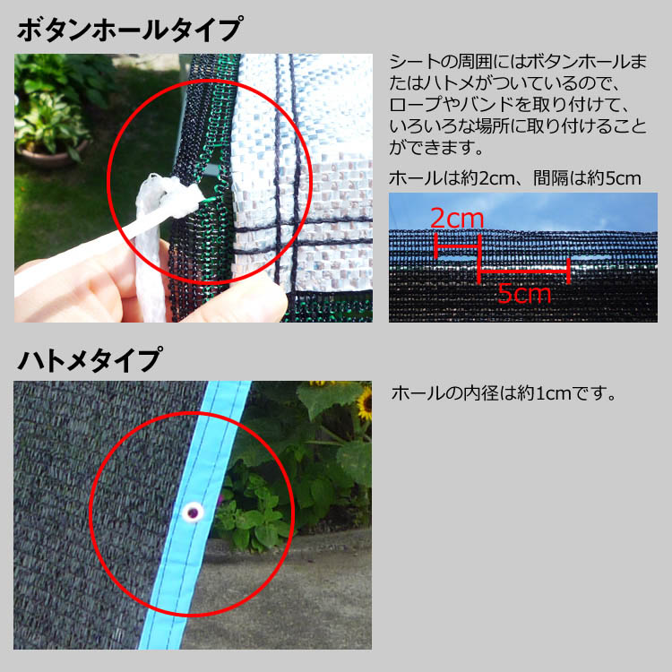 | ボタンホールタイプ | ←フチを選んでください→ | ハトメタイプ |